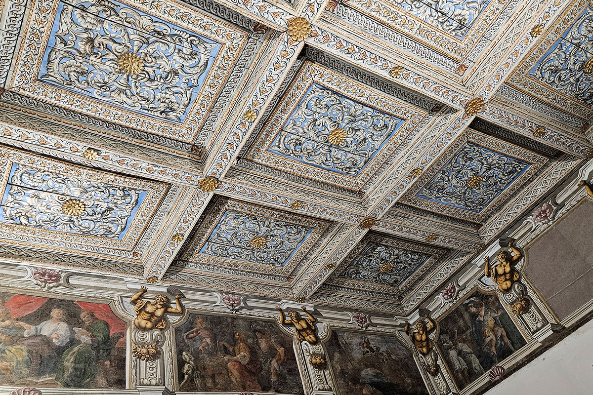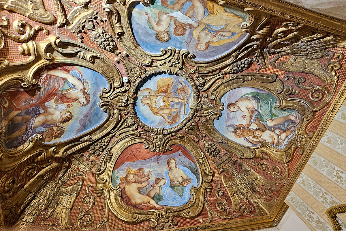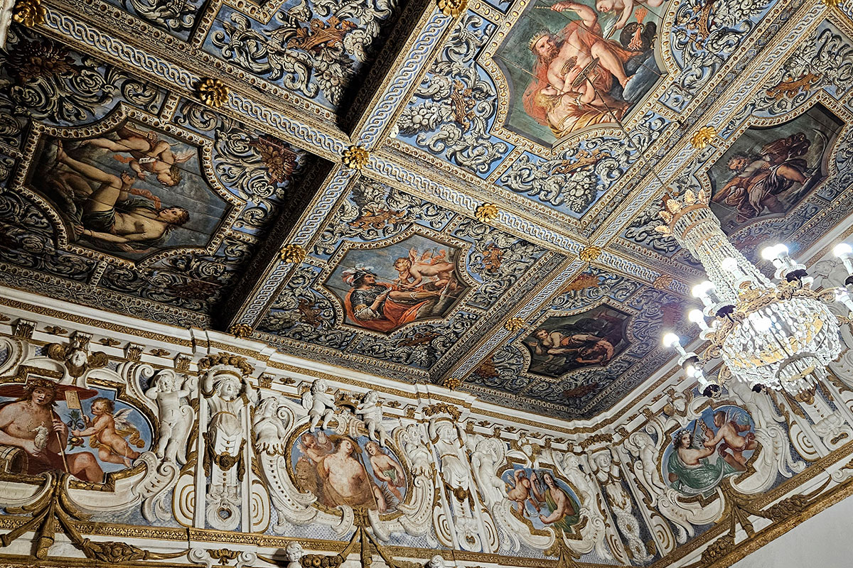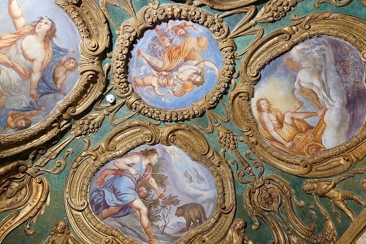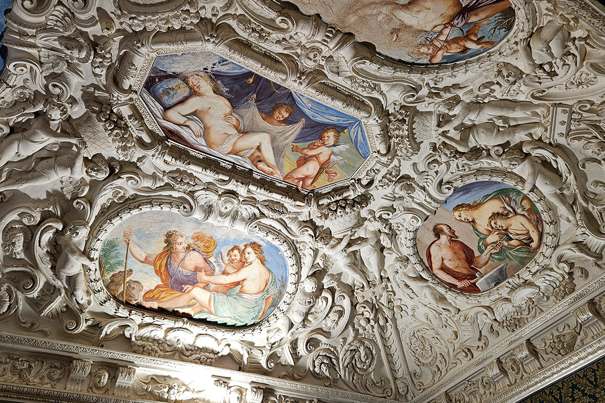 Gli stucchi del camino, così come l’apparato decorativo, sempre in stucco, che orna il fregio dello Zodiaco, vanno messi in rapporto con le decorazioni della Galleria, la quale costituisce il terzo nucleo di edificazione del Palazzo, voluto da Francesco Ludovico Ferrero Fieschi e da Francesca Maria Cristina Simiana di Pianezza in occasione del loro matrimonio avvenuto il 2 agosto 1660. Oggi purtroppo divisa in stanzette e visitabile solo nella prima parte, la galleria è lunga ben 41 metri, con una volta a sesto ribassato interamente coperta di stucchi, e termina con la cappella privata del principe.