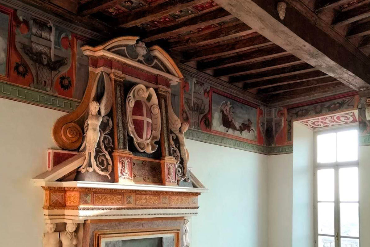 Nel ‘500 si ebbero gli interventi più significativi. Guido Biandrate detto Seniore e suo nipote adeguano il maniero a fastosa dimora rinascimentale. Nel ‘600 venne poi edificata l’ala sud, inglobando due torri già esistenti. Nel ‘700 il castello di Foglizzo fu convertito definitivamente da struttura di difesa a dimora di campagna, dato che i Biandrate già da tempo risiedevano stabilmente a Torino. Si cercò di ingentilire l’aspetto militaresco della struttura realizzando gli stemmi dipinti sulle pareti esterne e le finte cornici multicolori che contornano le finestre. Furono rimodernate l’entrata e le stanze al piano terra, decorate ad opera di Camaschella, si costruì la torre-scala e lo scalone principale.