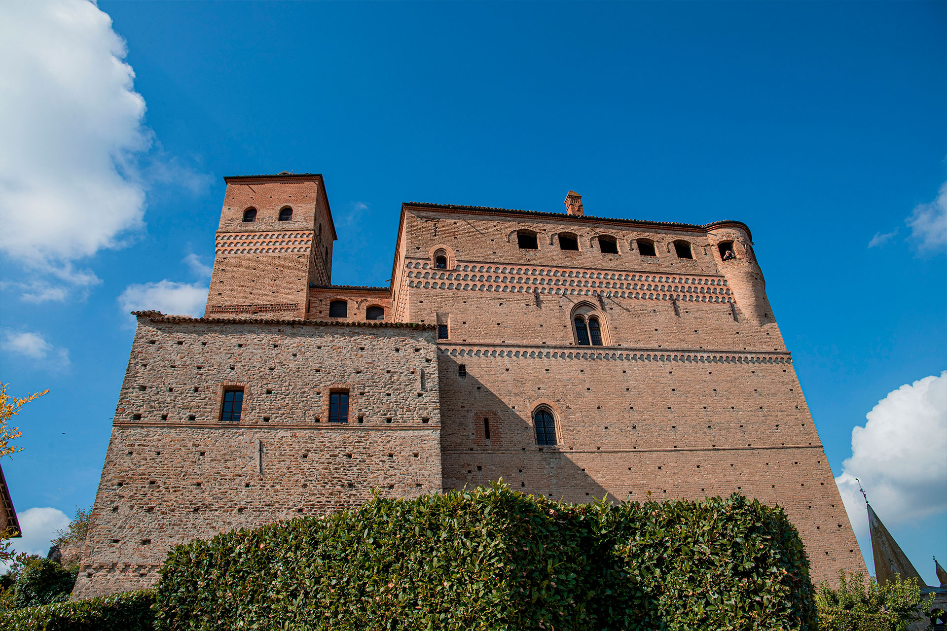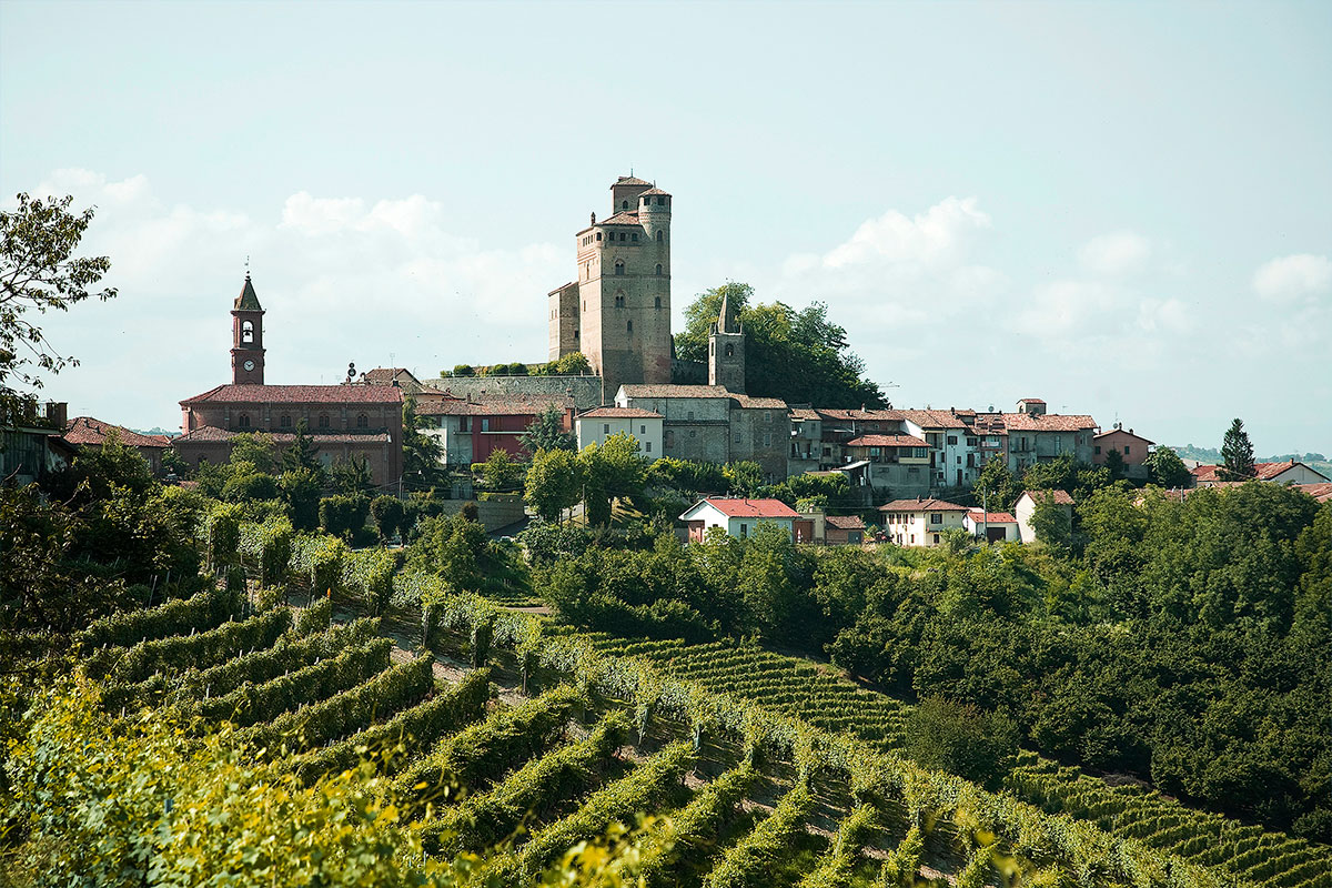 Il Castello, già dei Falletti di Barolo, sovrasta il paese e colpisce immediatamente per lo slancio e la verticalità della sua architettura gotica. Il luogo era anticamente fortificato da una torre, all'epoca in cui i discendenti di Bonifacio del Vasto erano i signori del luogo: Bonifacio Minore e Ottone del Carretto. Nel 1190, il feudo dei Del Carretto venne acquistato da Manfredo di Saluzzo. La torre venne abbattuta nel 1340, quando il possedimento pervenne ai Falletti, importante famiglia signorile delle Langhe, per far posto all'attuale castello, edificato da Pietrino e dal figlio Goffredo II. Dal tempo della sua costruzione ad oggi pochissimi rimaneggiamenti sono stati apportati al castello, che non subì gravi fatti d'armi.