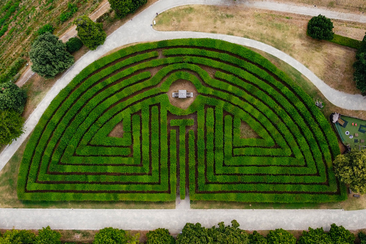 Le vaste terrazze verdi offrono una splendida vista panoramica e l'immenso parco fa da suggestivo scenario naturale agli spettacoli e ai concerti che si possono svolgere nella radura centrale. L'antico percorso della strada dei 22 giri e l'intricato labirinto di siepi di carpini sono perfetti per set pubblicitari o cinematografici.